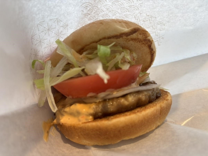 オーロラソースの程よい酸味と甘みが全体をまとめ、肉々しいパティがありながらも、サラダ感覚でさっぱりと味わえる仕上がり。野菜をたっぷり楽しみたいランチタイムにぴったりです。