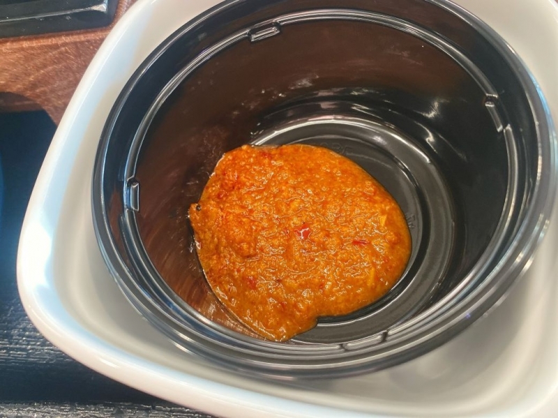少しずつ加えていくと、味ががらりと変わります。濃厚でクリーミーなスープに、一気にパンチが加わる感覚。見た目は少なく感じましたが、しっかり味が変わる量でした。全部入れてガツンといくもよし、少しずつ加えて調整するもよし。