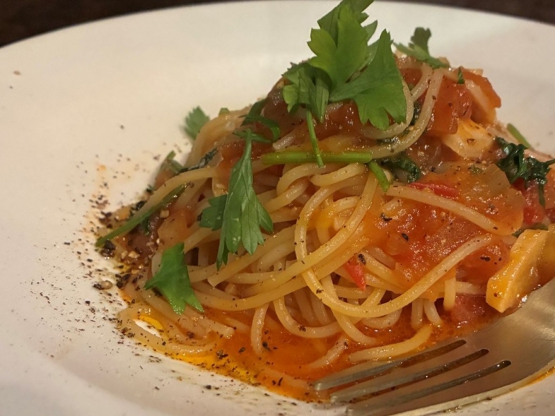 常時提供している自家製トマトソースのパスタと、季節の野菜を使った創作パスタの2種類から選べます。
