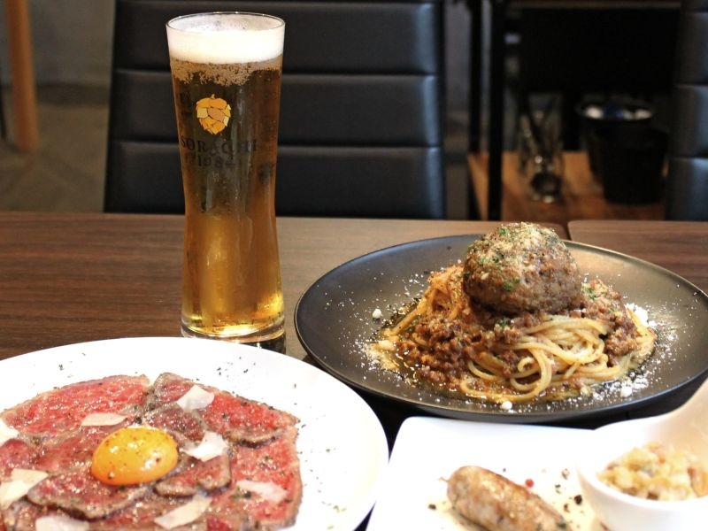 埼玉県 越谷市 おすすめのお店 #せんげん台駅 #創作イタリアン肉バルCRAFT #牛肉のカルパッチョ #自家製ソーセージ #自家製ハンバーグ煮込みスパゲッティ #生ビール #サッポロビール #SORACHI1984 #SORACHI1984が飲めるお店 #SORACHIBASE